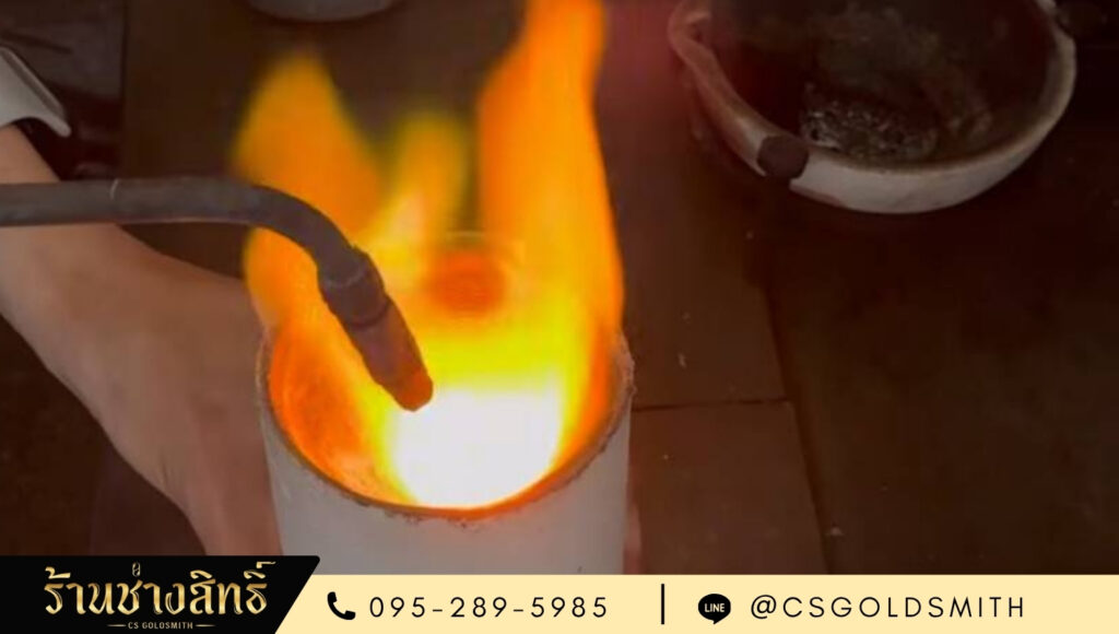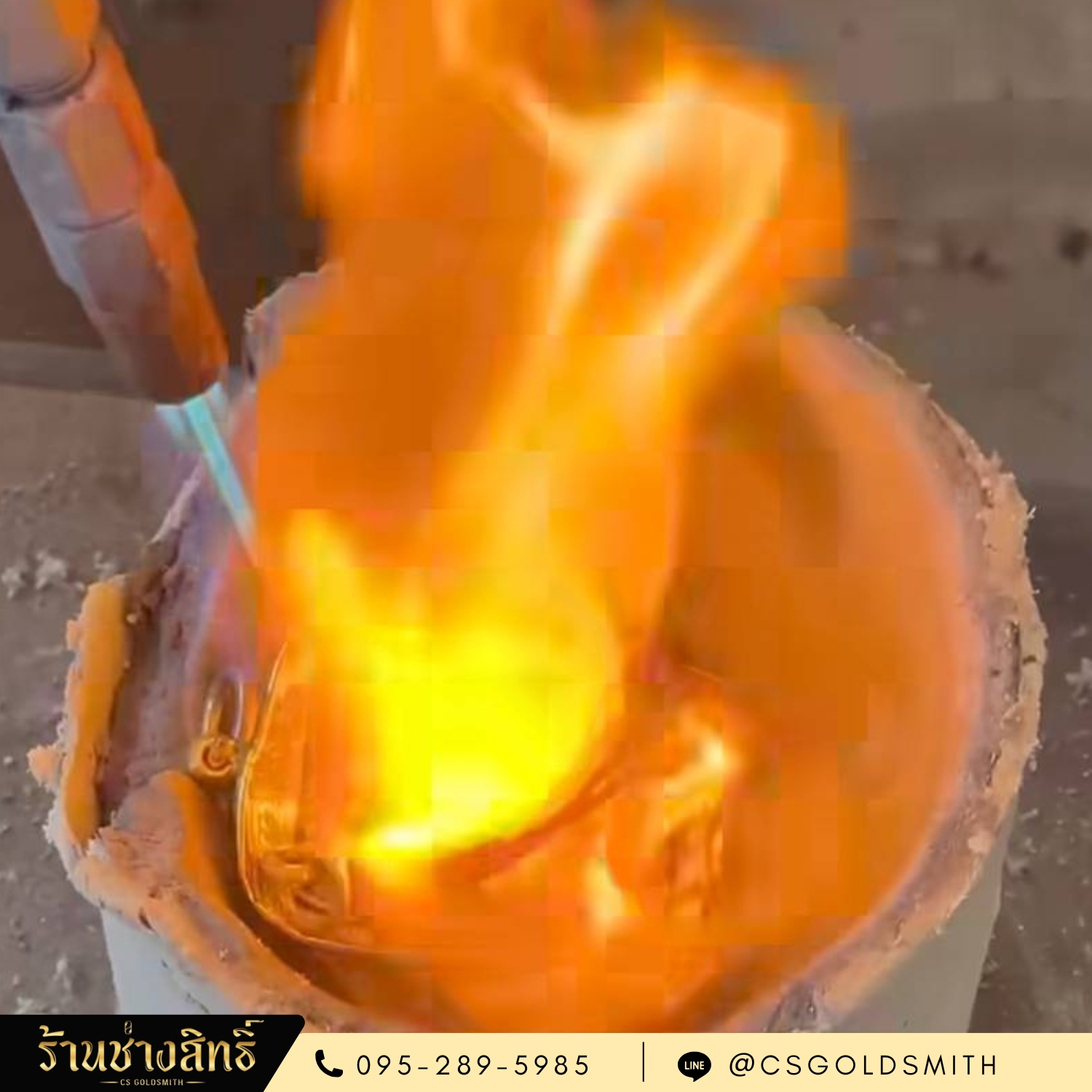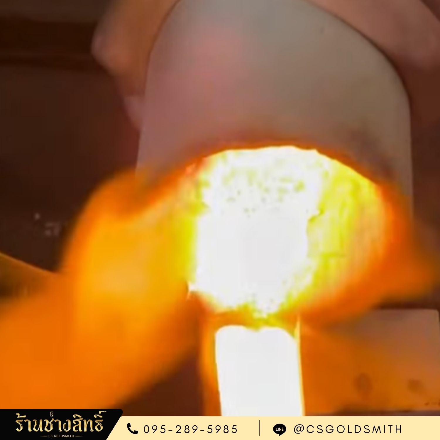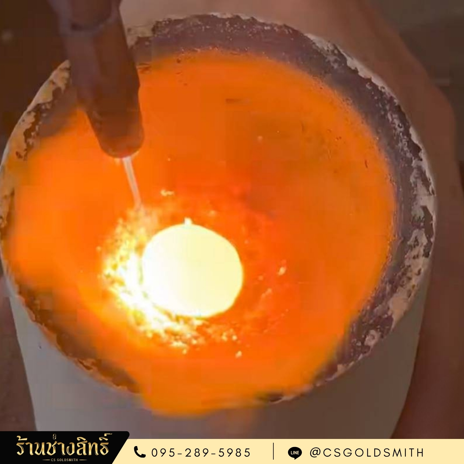 - งานหลอมด้วยความประณีต ช่างของเราจะควบคุมกระบวนการหลอมทุกขั้นตอนอย่างพิถีพิถัน เพื่อกำจัดสิ่งเจือปนและปรับสภาพเนื้อทองให้กลับมาบริสุทธิ์ที่สุด ลดการสูญเสียเนื้อทองคำให้น้อยที่สุด